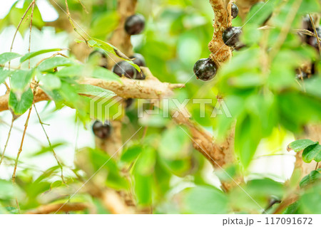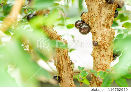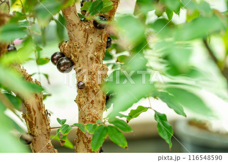 滋賀県草津市 水生植物公園みずの森の温室ロータス館で実るジャボチカバの実