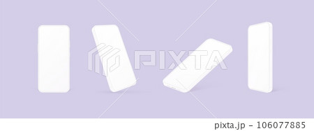 Clay smartphone mockup. 3d white cellphone minimal design, white telephone screenshot for mobile app present, blank plastic cell phone