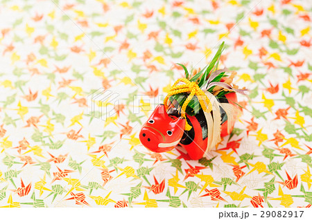 正月飾り、赤べこ、獅子舞付き門松、熊手に破魔矢を飾って新年を迎えよう。【横】