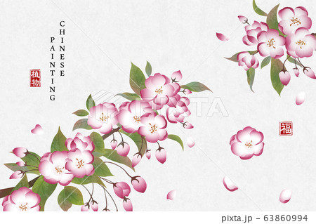 Chinese ink painting art background plant elegant flower Begonia. Chinese translation