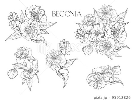 Begonia. Set of flowers and leaves.