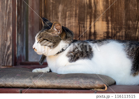 吹屋ふるさと村 青空と美しい重伝建の町並み まどろむネコ