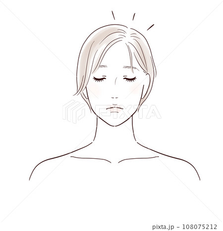 ぺちゃんこ髪 髪のボリュームが少ない女性のイラスト 線画