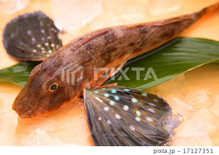 ホウボウ 全景横 鰭閉じ 胸びれが発達した脚で海底を歩く魚 白身の高級魚
