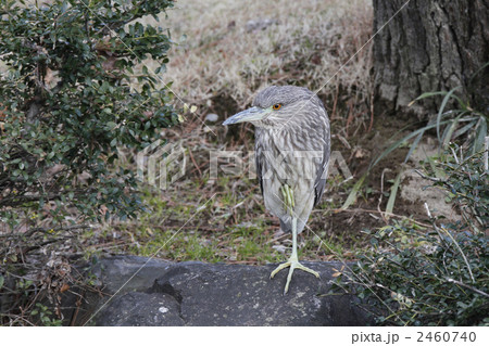 梅田川の川岸で佇んでいたゴイサギの幼鳥
