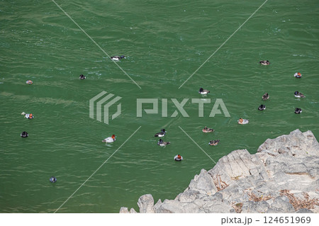 宇治川に集まるカモ キンクロハジロ ホシハジロ 宇治市