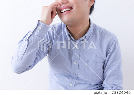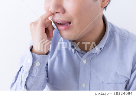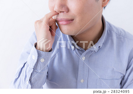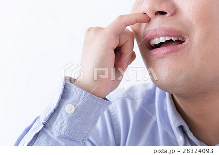 鼻くそ (ほじる 子育て 育児 乳幼児 癖 アレルギー 花粉 顔なし ボディパーツ コピースペース)