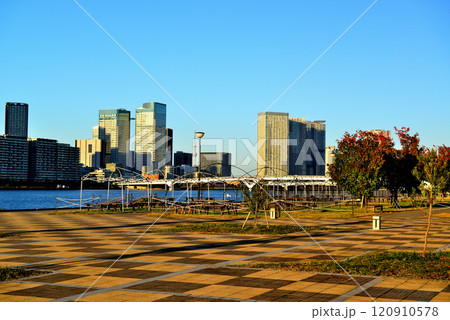 豊洲ぐるり公園 豊洲大橋と高層マンションの風景