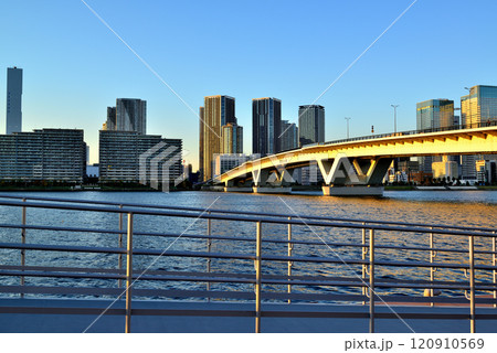 豊洲の夕暮れに形を表す超高層ビル Skyscraper of Toyosu in sunset