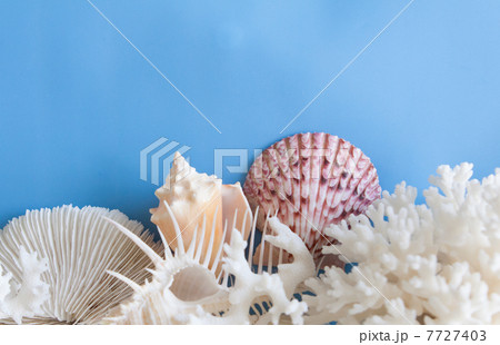 青の背景に置いたホネ貝