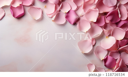Beautiful background with pink rose petals on a gray concrete background. Romance, Love, Valentine's Day, International Women's Day.