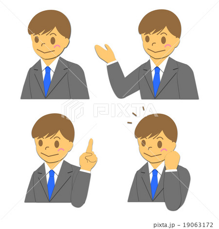 ビジネスマン 表情 ほほ笑む 案内 説明 ガッツポーズ グレー