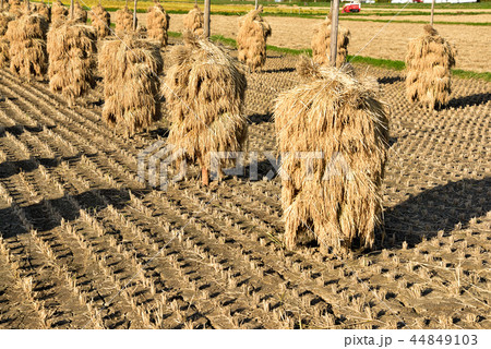 「ほんにょ」という岩手県北上市の刈り入れして乾燥している郷の秋の風景