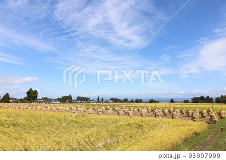 岩手 奥州市 収穫時期の田園風景と稲わら干し(ほんにょ)