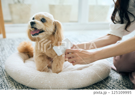 ブラッシングされるトイプードル