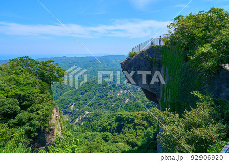 千葉県鋸南町の地獄のぞき付近の鋸山日本寺展望台を見る