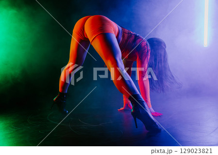 Pro Woman Dancer Performance On Floor. Hot Impressive Dance.lady In Sexy Clothes