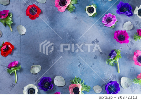 Anemones flowers on stone background
