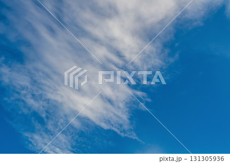 Background photo of sky with spreading streaks of white aerosol sprays from airplanes, look like clouds. Environmental Change and Precipitation Experimental Program