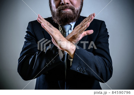 指でバツを作る年配の男性 ダメ 役員役職 圧力パワハラ 脅迫 クレーム 反社 ブラック企業 暴力団
