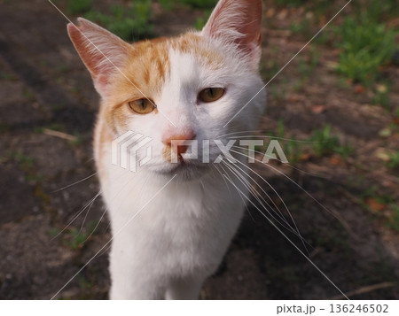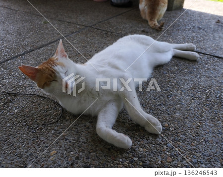 道に寝そべる可愛い白い猫