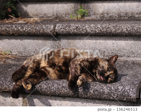ポカポカ陽気に誘われて日向ぼっこする猫