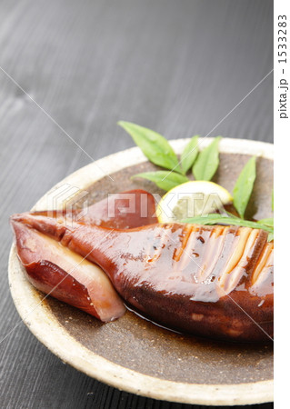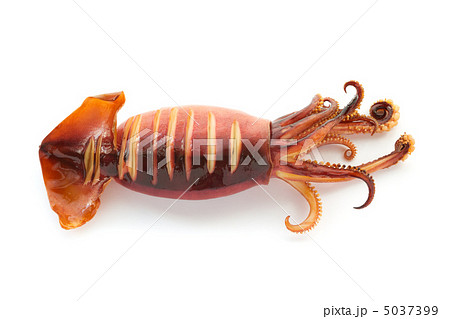 お皿にのせた イカ焼き ぽっぽ焼き 姿焼き 白背景