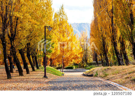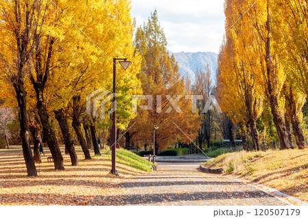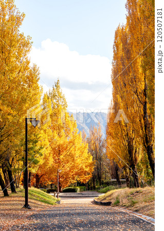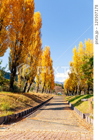 ポプラ並木の紅葉【富士川クラフトパーク】