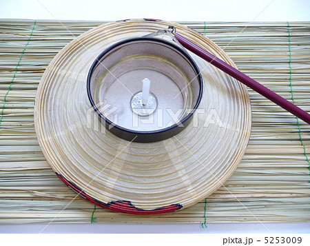 お盆で敷く真菰と盆菓子 御供菓子 和菓子 干菓子 落雁 まこも お盆 ゴザ 背景素材