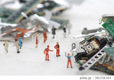 未来社会の災害とPCの残骸のジオラマ