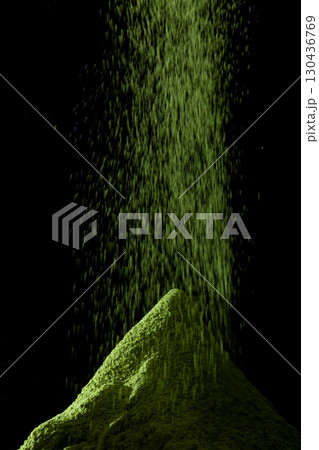 抹茶イメージ 抹茶色の背景で点てた抹茶を撮影