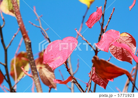 マルバノキの紅葉のクローズアップ 【白背景】 【空背景】