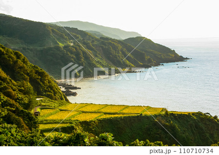 輪島の日本海に面した水田