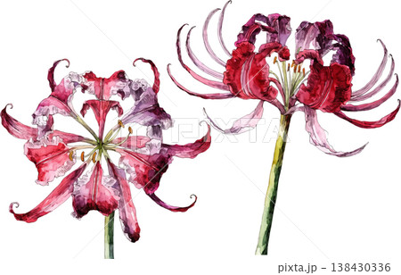 Watercolor Illustration of Red Spider Lily Flowers