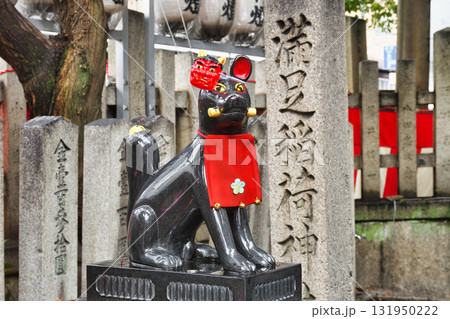 満足稲荷神社の節分祭 鬼の面をつけた狛狐(京都市左京区)