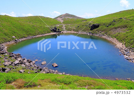 新潟 糸魚川の景勝地 高浪の池と湖面に映る「明星山(みょうじょうやま)」 糸魚川ジオパーク