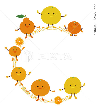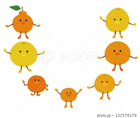 柑橘キャラクター7種類が勢揃い_ちぎり絵_ビタミンCのイメージフレーム