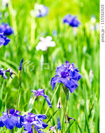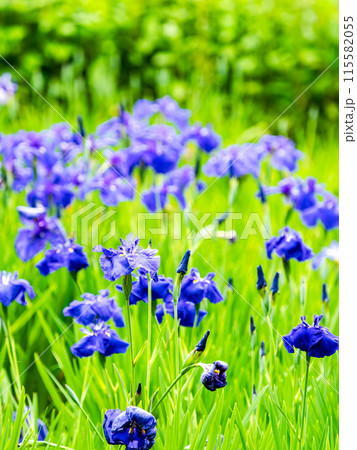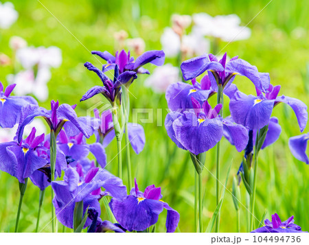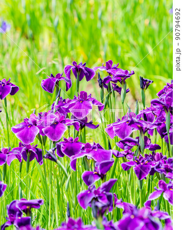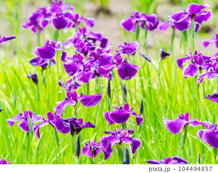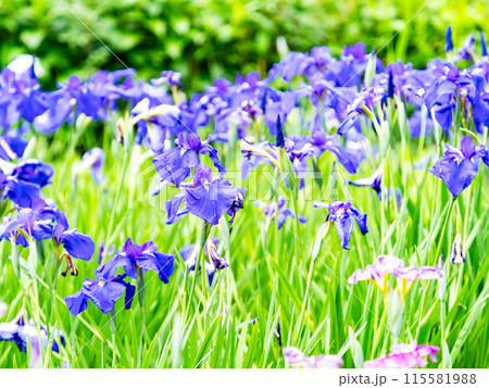 爽やかな初夏の景色 カラフルで華やかな満開の花菖蒲