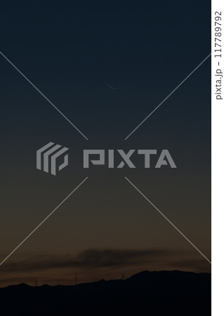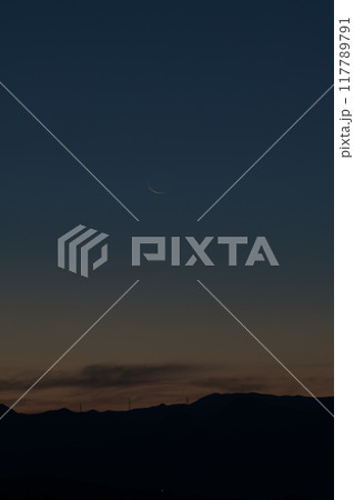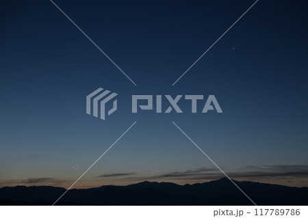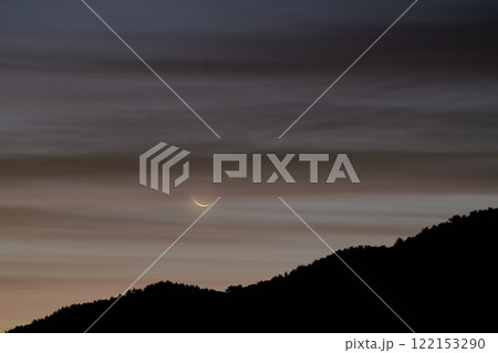 北杜市白州町から見る奥秩父山塊上の新月前夜のとても細い月
