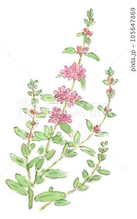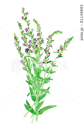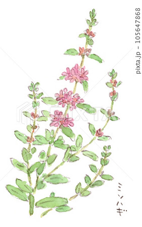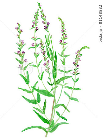 梅雨〜夏の植物、ミソハギの可愛らしいピンク色の小花の水彩画イラスト