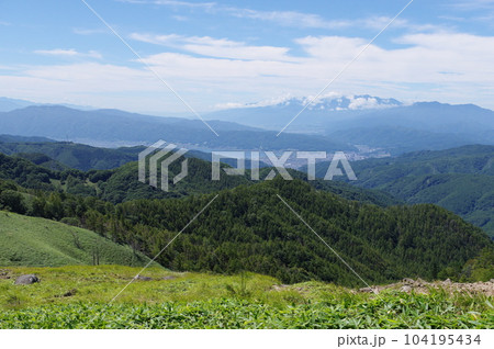 長野県諏訪市 車山の中腹から北西側(北アルプス,美ヶ原,三峰山など)の眺望
