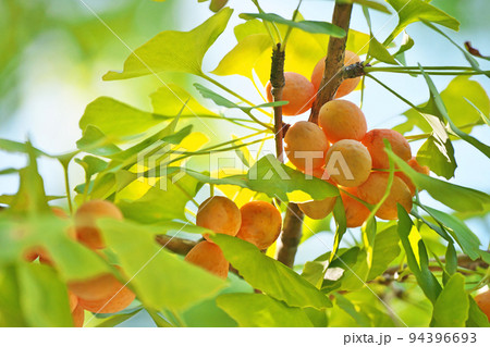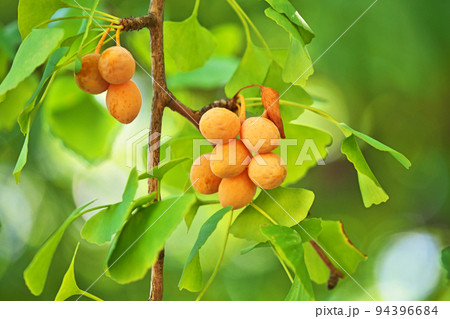 オレンジ色のイチョウの実(秋、九月)
