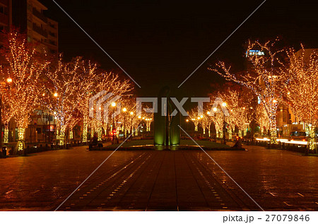 みなと大通り公園の冬のイルミネーション 噴水ショーと共に