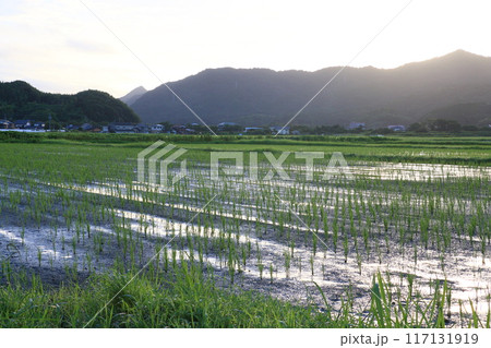 【稲素材】朝の中野の棚田の稲【山梨県】