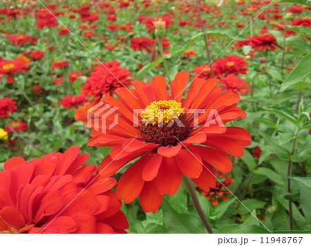 ジニア ヒャクニチソウ 赤 ひたち海浜公園