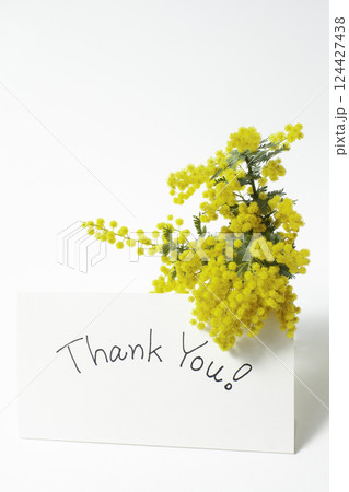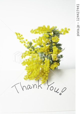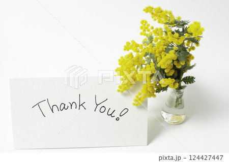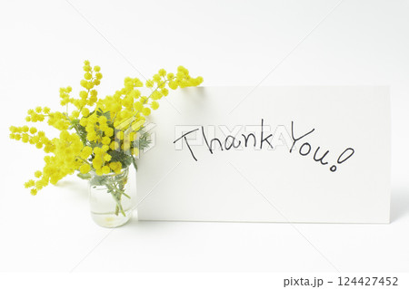 明るい黄色が春を告げ、日々の感謝を伝えるために贈るミモザの写真。