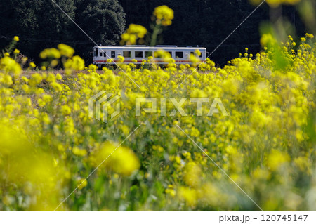 菜の花畑を走る列車〜平成筑豊鉄道400型
