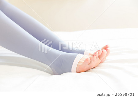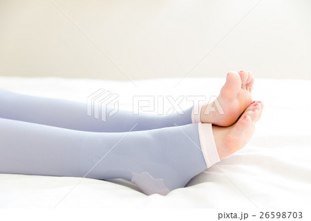 浮腫取り靴下・着圧ソックスを履いた若い女性のイラスト