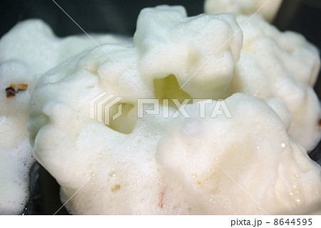 ムクロジの実をビニール袋に入れて揉んで作った滑らかな泡