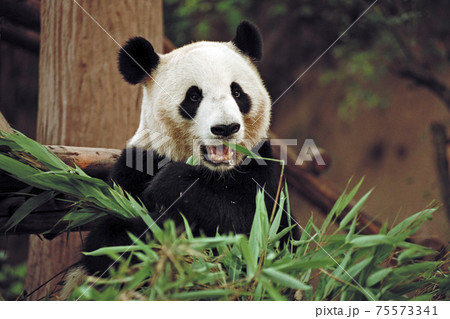 おいしそうに笹を食べる中国のパンダ Giant Panda Eating Bamboo Grass